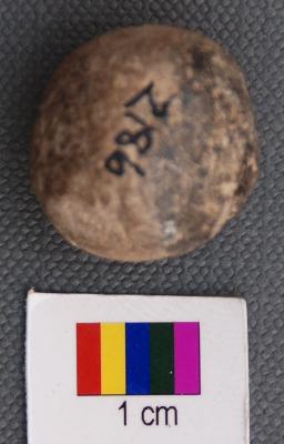 | Description / विवरण | It is a round terracotta ball. It is made of fine clay and fired at high temperature, though not uniformaly. It looks like bird shot. |