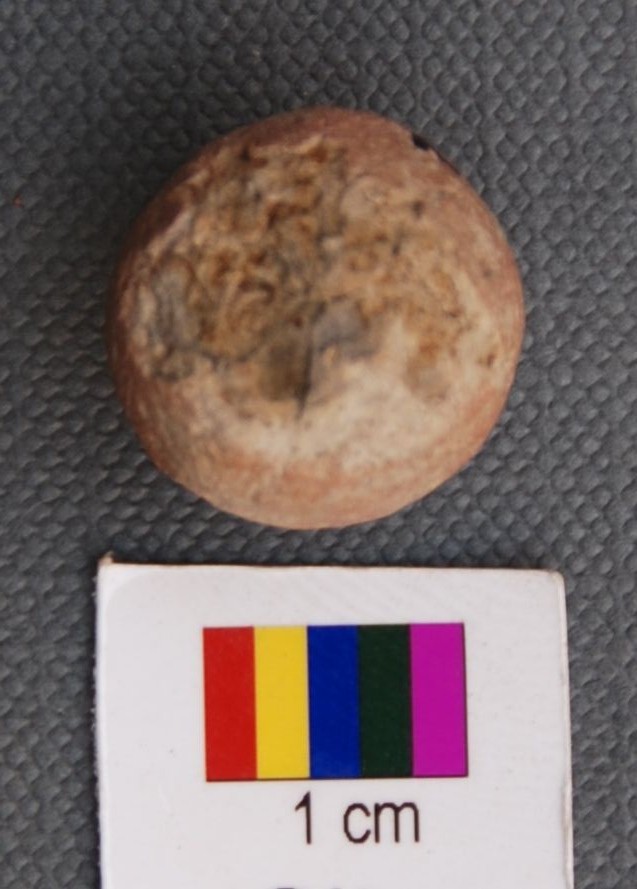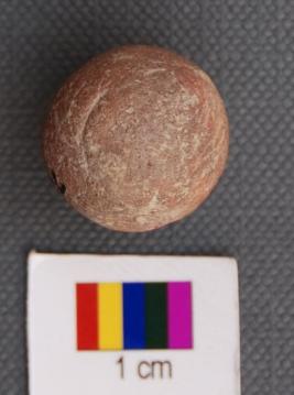 It is round terracotta ball, which looks like a bird shot. It is fired at high temperature, though not uniformally.