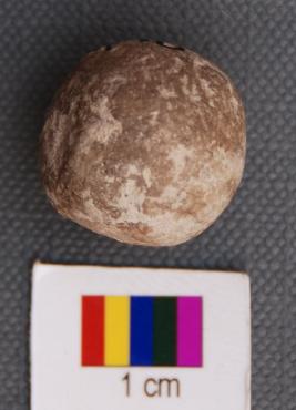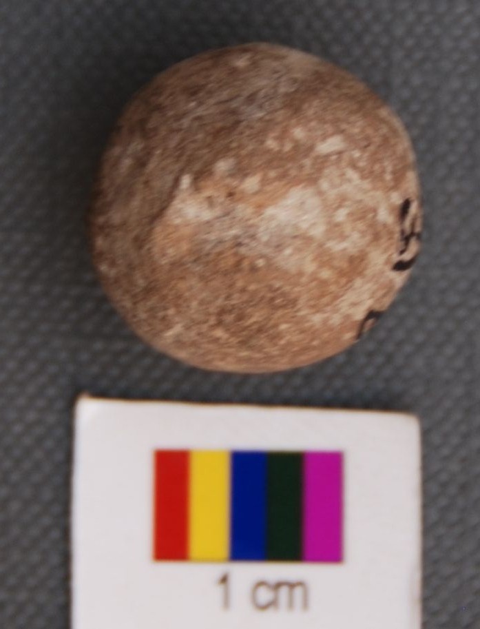 It is a spherical terracotta ball, fired at high temperature. It looks like a bird shot.