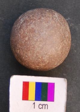 | Description / विवरण | It is a small sling ball made of sand stone. It is perfectly round with polished surface. |