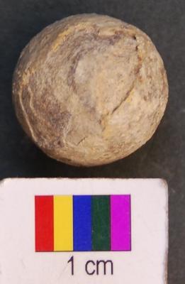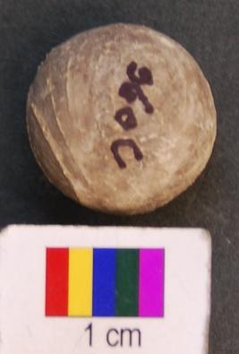 | Description / विवरण | It is a stone ball partially broken on the surface. It has polished surface. |