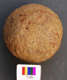 | Description / विवरण | It is a sand stone ball, slightly smaller than the tennis ball. It has rough surface. |