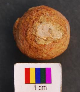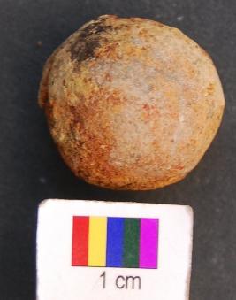 | Description / विवरण | It is a small sand stone ball, which looks like a bird shot. Its surface is peeling off. It is brownish in appearance. |