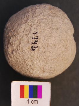 | Description / विवरण | It is a stone ball, which is slightly smaller than tennis ball. It has granular surface. |