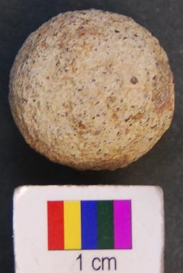 | Description / विवरण | It is a small stone ball, which looks like a sling ball with granular surface. |