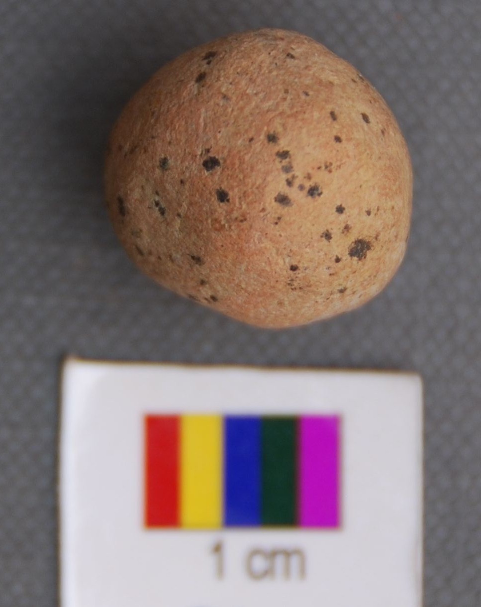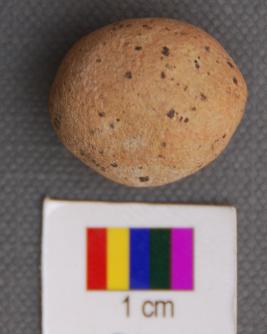 It is somewhat round terracotta ball, which has irregular surface. It is oblong in shape.