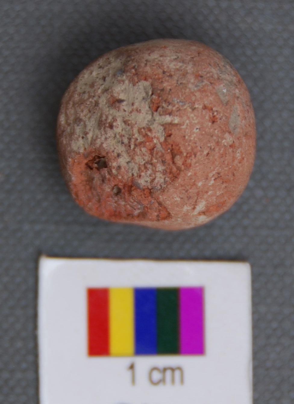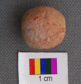 It is a spherical terracotta ball fired at high temperature. It looks like a sling ball.