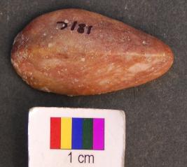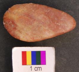 | Description / विवरण | It is a leaf shaped stone object with three facets. All of them are very well polished. It appears to be a polisher perhaps used for burnishing. |