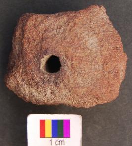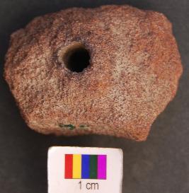 | Description / विवरण | It is perforated stone disc like object. Its body is thick in the central part and thin down towards peripheral areas. |