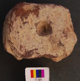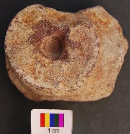 | Description / विवरण | It is fragment of stone object, which looks like stem or stand. On either side is a small depression, which looks like perforation attempted. |