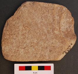 | Description / विवरण | It is a flat stone object, which has a thin body, polished surface and edge. It was may have been used as a sharpener. |