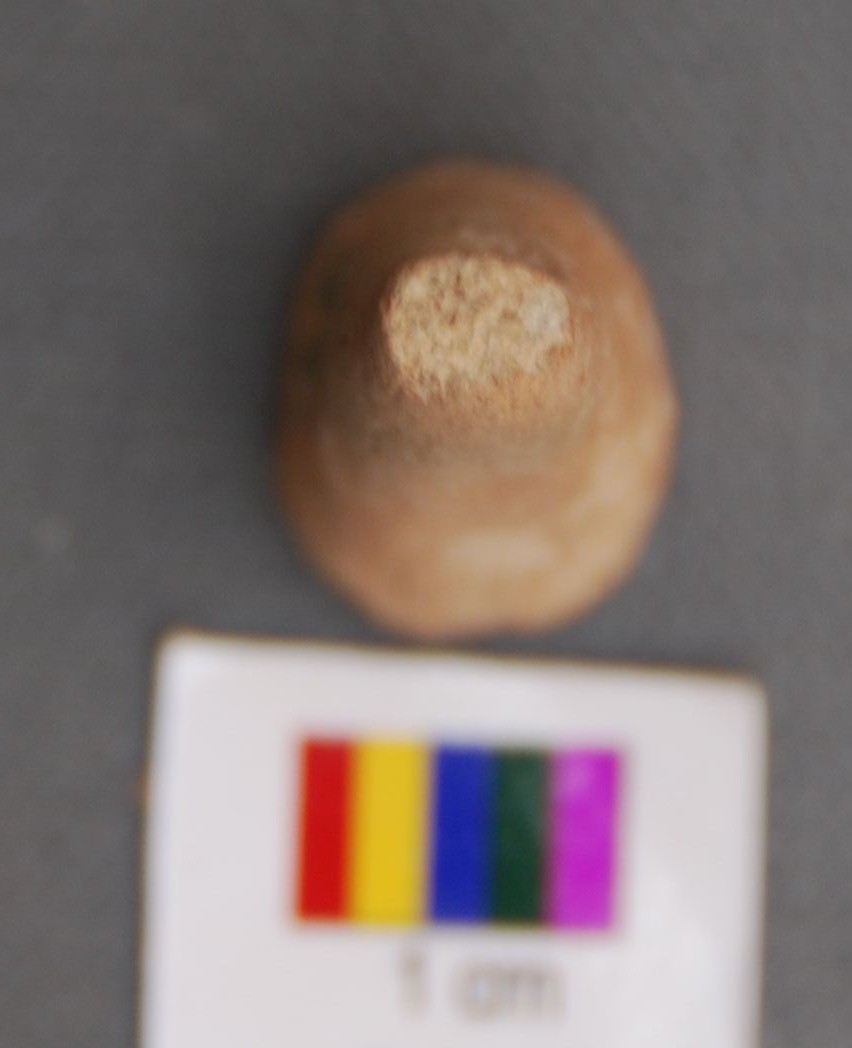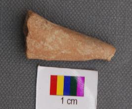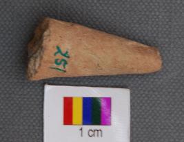 It is a conical object broken on either side. It may be a broken leg or horn of a terracotta animal figurine.