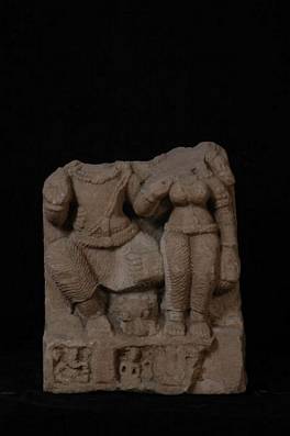 | Description / विवरण | Sculpture showing headless figure of Siva and Parvati in alinganamudra. Parvati is seated in the lap of her consort. One of hands of Siva flung behind the neck of Parvati. Lion is present near their feet. |