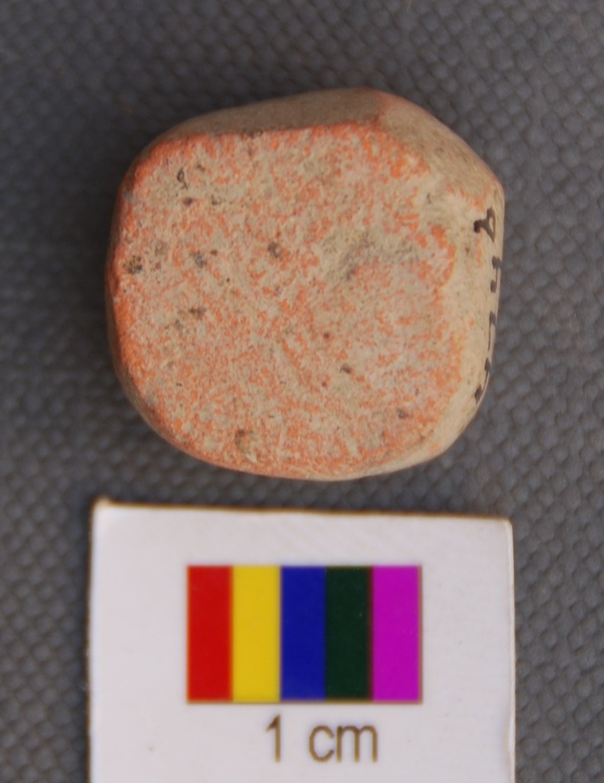 It is a cubical terracotta object, with blunt edges. It resembles Harappan cubical weights.