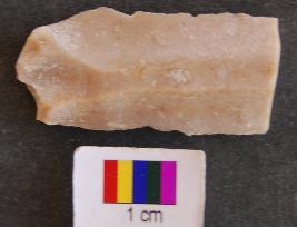 | Description / विवरण | It is fragment of a ribbon blade of rohri chert. It has prominent bulb of percussion. |