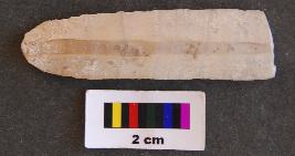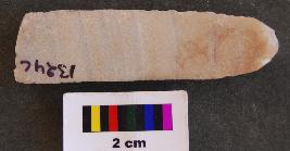| Description / विवरण | It is a long blade the distal end of which is missing. It has thick body and a prominent rib. Its one side is retouched. |