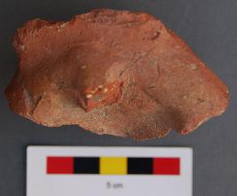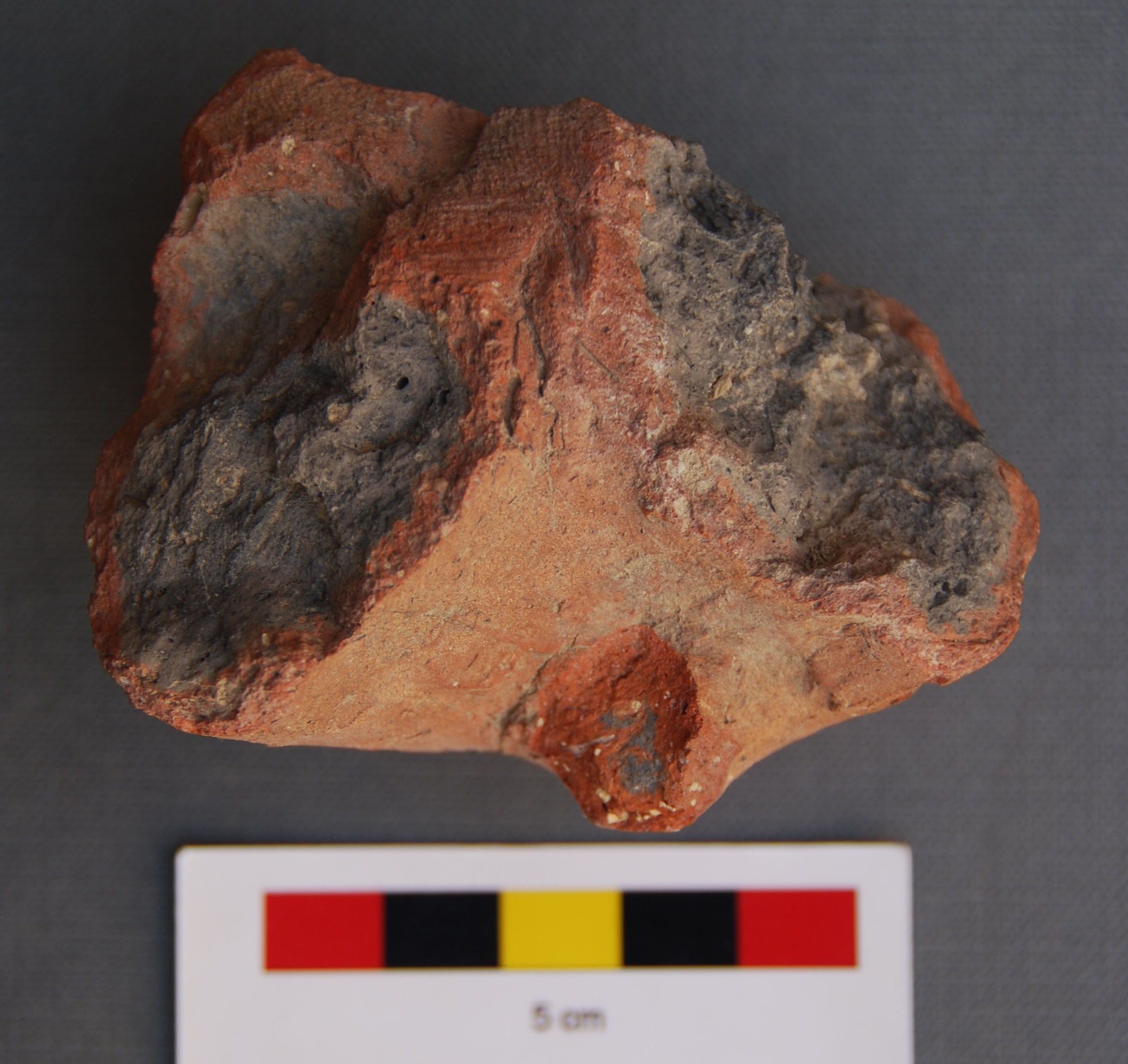 It is perhaps an animal figurine as its hind part and tail has partially survived. A cloth impression was also identified between two leg portions.