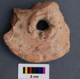 | Description / विवरण | It is a broken wheel, with a prominent perforation in the central part. |