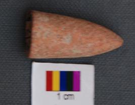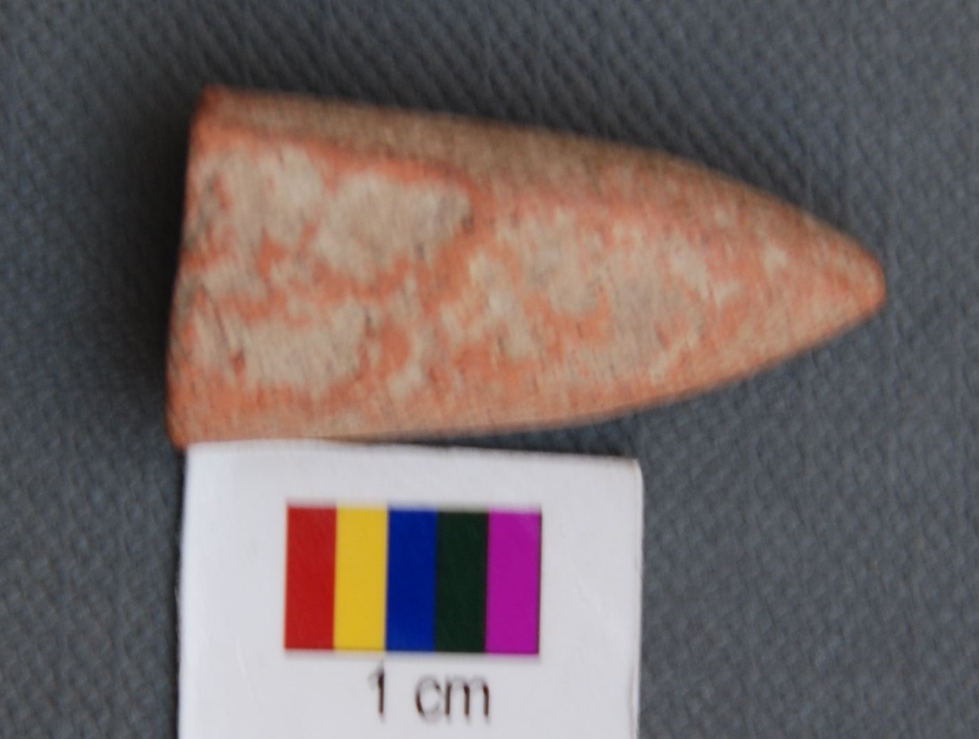 It is conical object which is broken at the wider end. It looks like a legg perhaps luted to a small pot.