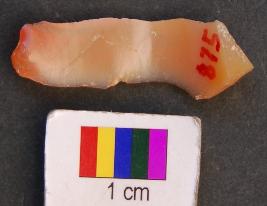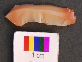 | Description / विवरण | It is an intact blade with almost parallel sides and a prominent ridge. It is retouched on both sides. It is thick and slightly curved on the distal end. |