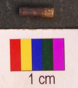 | Description / विवरण | It is a small fragment of a drill bit with circular body and thin section. Its both ends are missing. It has prominent grooved line on one end. |