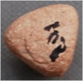| Description / विवरण | It is pyramidical terracotta object with four facets and blunt edges. |