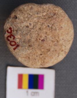 | Description / विवरण | It is a knob which looks like a button with a prominent conical knob. It may be a gamesman or weight. |