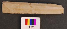 | Description / विवरण | It is fragment of a long parallel sided blade with facets on the obverse. Its both ends are missing. |