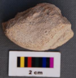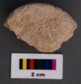 | Description / विवरण | It is fragment of a terracotta cake with a prominent groove on the vertical face. |