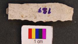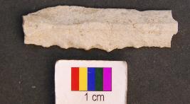 | Description / विवरण | It is fragment of a parallel sided blade with prominently retouched on one side and looks like serrated. Its other arm is blunt. It has thick section and its both ends are missing. |