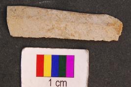 | Description / विवरण | It is fragment of a parallel sided blade with one side retouched whereas other one is blunt. It has thin section and both ends are missing. |