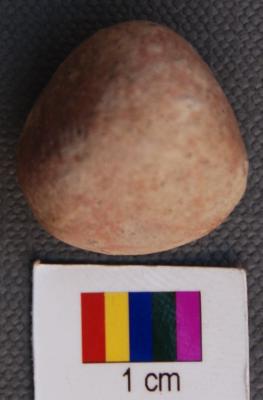 | Description / विवरण | It is a triangular terracotta object with four facets. Its edges are blunt. |