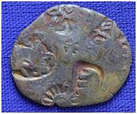 | Description / विवरण | The coin is an imperial type Punch- marked coin. The shape of the coin is Oval. Obverse Sun, six armed, tree, two animals and chakra. Reverse Symbols are minute. |