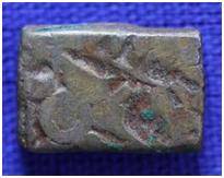 | Description / विवरण | The coin is an imperial type Punch- marked coin. The shape of the coin is rectangular. Obverse Sun, six armed and other symbols are indistinct. Reverse Symbols are indistinct. |