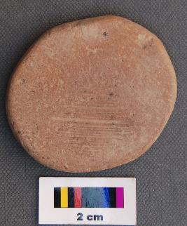 | Description / विवरण | It is a circular terracotta disc which may have been used as a gamesman. Its edges are grind or have used marks. |