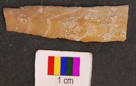 | Description / विवरण | It is fragment of a parallel sided blade with retouched sides. It has thin section and its both ends are missing. |