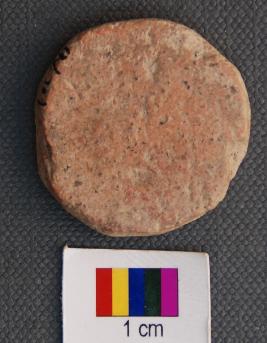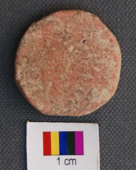 | Description / विवरण | It is a disc perhaps made of body sherd of a pot as it has slip on one side. Its thickness is uneven. |