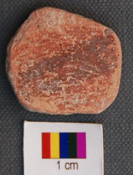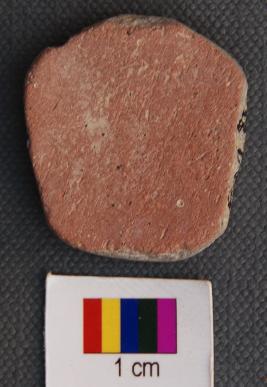 | Description / विवरण | It is a roughly circular terracotta disc, which is slipped on one side. It may have been made out of a pot sherd. |