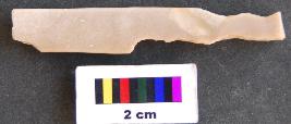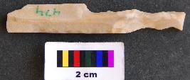 | Description / विवरण | It is fragment of a parallel sided blade with blunt edges. It has thick section and its both ends are missing. Half the surviving body is attempted as serrated blade. |