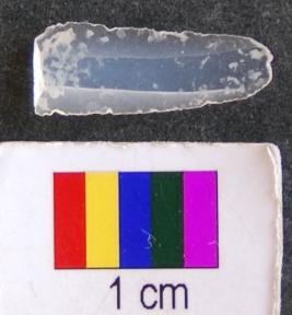 | Description / विवरण | It is fragment of a blade with retouched sides. It has thin section and its striking end is missing. |