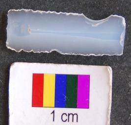 | Description / विवरण | It is fragment of a parallel sided blade with retouched sides. It has thin section and both ends are missing. It has a notch on one side. |