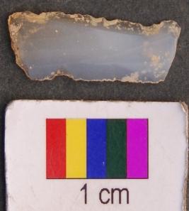 | Description / विवरण | It is a parallel sided blade with retouched sides. It has thin section and its distal end is missing. It has a notch on one side. |