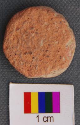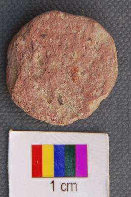 | Description / विवरण | It is a small terracotta disc made of coarse red ware. It has thin section. |