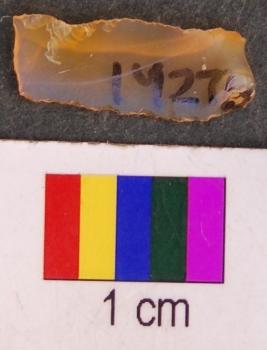 | Description / विवरण | It is fragment of a parallel sided blade with retouched sides. It has thin section and its distal end is missing. It facetted on the obverse. |