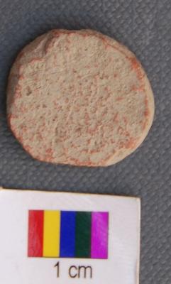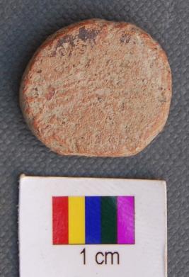| Description / विवरण | It is a small disc type tablet made of red ware. It has thin section and may have been used as gamesman. |