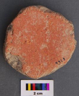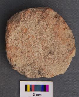 | Description / विवरण | It is a terracotta disc thick in section. Its surface on one side is entirely chipped off. It has irregular edge. It was perhaps made out of a body sherd of a pot. It bears grass and seed marks. |