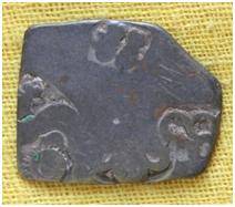 | Description / विवरण | It is an imperial type of Punch-marked Coin. The coin is pentagonal in shape. Obverse Contains 5 symbols i.e. six armed, moon, six arched hill, fish, two taurine in a box. Reverse Contains 4 minute symbols i.e. animal figure, other symbols are indistinct. |