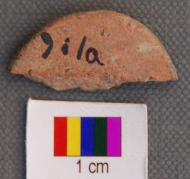 | Description / विवरण | It is fragment of a terracotta disc, which is thin in section and blackish in appearance on one side. |