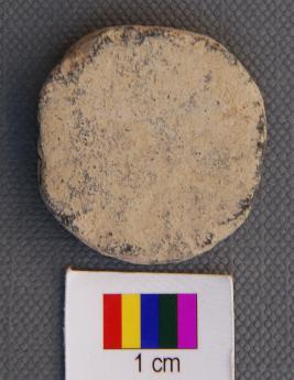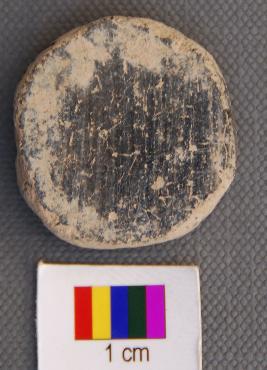 | Description / विवरण | It is a small terracotta disc made of pot sherd of burnished grey ware. It is thick on one side whereas thin on the other. |