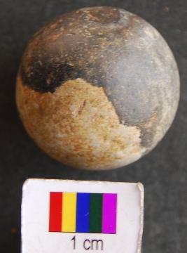 | Description / विवरण | It is a small stone ball with fine surface and perhaps used as sling shot. Its surface is partially broken. |